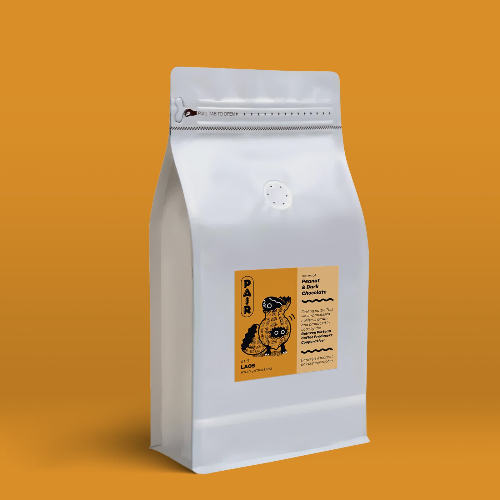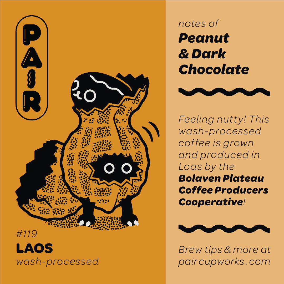 Peanut & Dark Chocolate -- Feeling nutty! wash-processed coffee is grown and produced in Laos by the Bolaven Plateau Coffee Producers Cooperative!